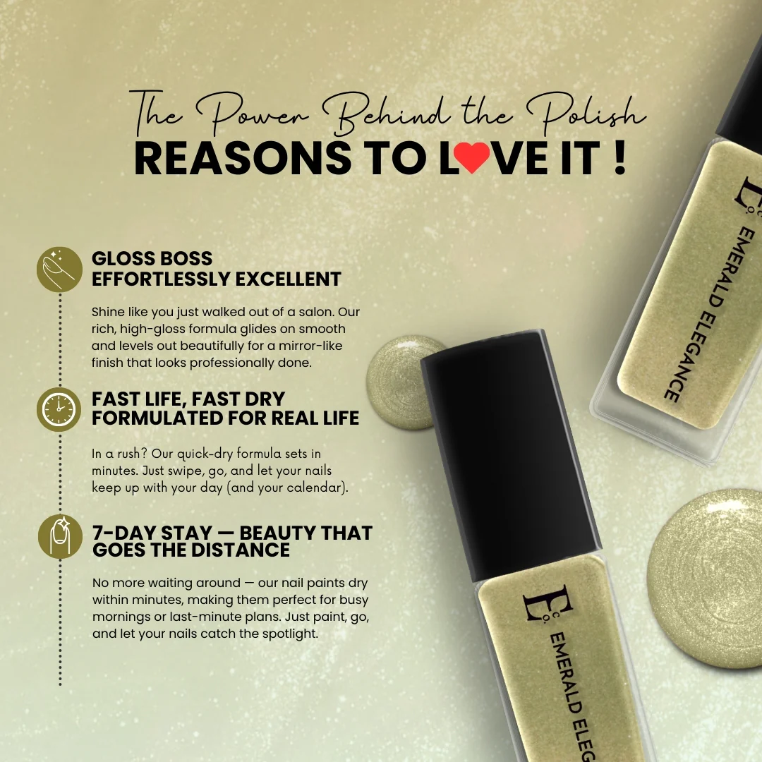 Emerald Elegance Vegan Green Nail Polish – Chip-Resistant, Non-Yellowing, Gel-Like Shine, Long-Lasting