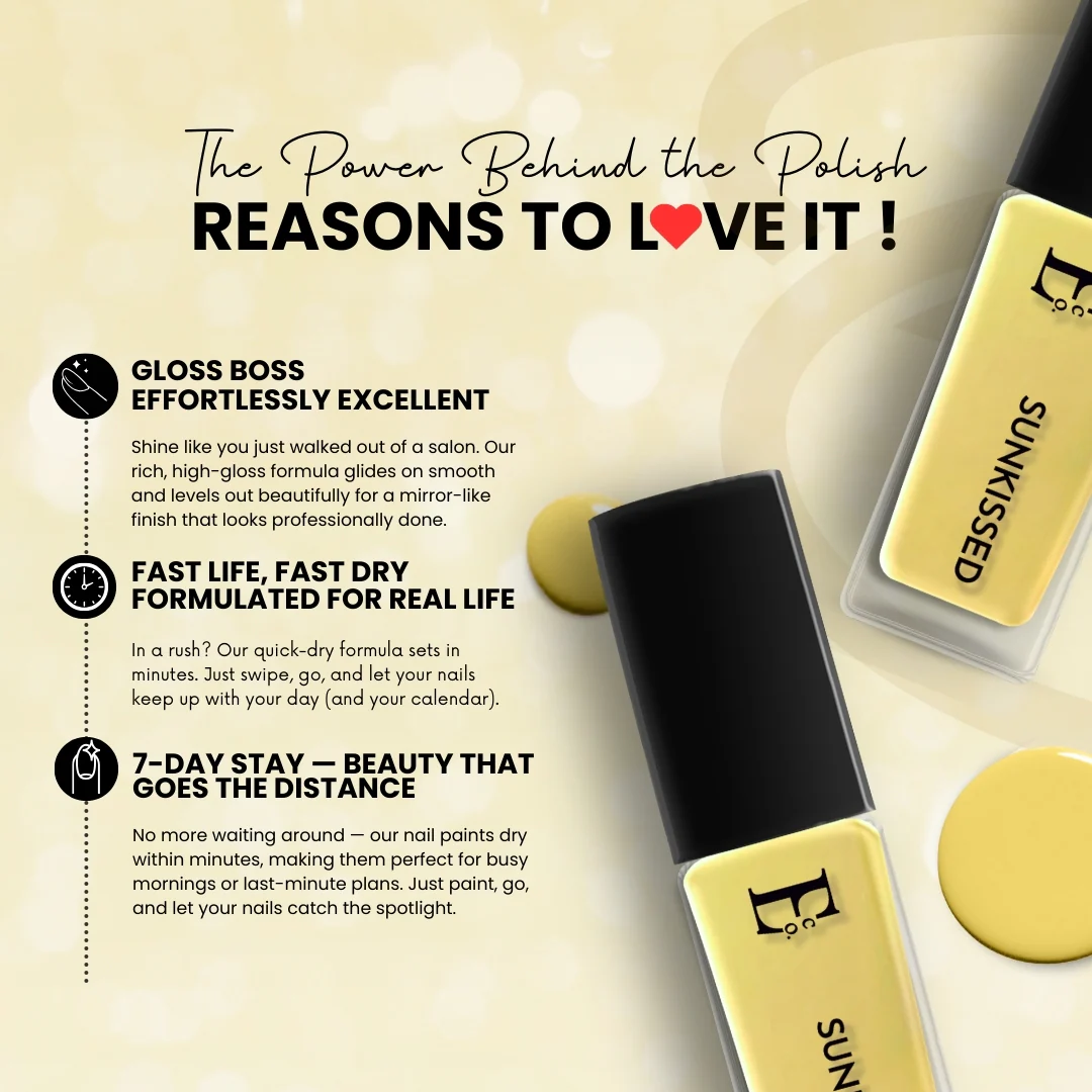 Sunkissed Vegan Pastel Yellow Nail Polish – Chip-Resistant, Gel-Like Shine, Long-Lasting, Strengthens Nails